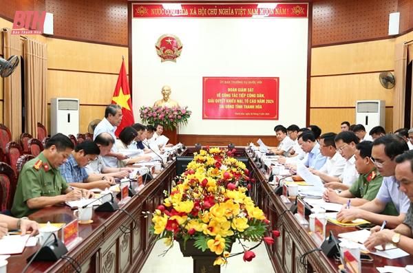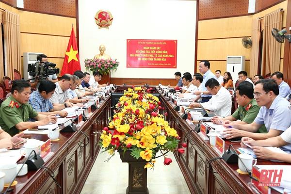 Phát biểu tại buổi làm việc, đồng chí Lại Thế Nguyên, Phó Bí thư Thường trực Tỉnh ủy, Trưởng Đoàn ĐBQH tỉnh khẳng định: Thời gian qua, tỉnh Thanh Hóa luôn quan tâm thực hiện tốt công tác tiếp công dân và giải quyết KNTC theo quy định của Đảng và pháp luật của Nhà nước. Tỉnh luôn đề cao tính thống nhất, nhất quán trong công tác lãnh đạo, chỉ đạo thực hiện công tác tiếp công dân và giải quyết KNTC, quan tâm bảo đảm quyền lợi của Nhân dân. Trong đó, xác định xuyên suốt của tỉnh Thanh Hóa là muốn phát triển kinh tế thì phải bảo đảm ổn định về tình hình an ninh trật tự, do đó yêu cầu đầu tiên là phải làm tốt công tác tiếp dân, đồng thời tập trung giải quyết KNTC của công dân ngay từ cơ sở và hạn chế đơn thư vượt cấp, tụ tập đông người.