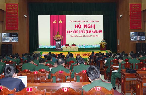 Chiều 23/12, UBND tỉnh Thanh Hoá tổ chức Hội nghị hiệp đồng tuyển quân năm 2025. Dự Hội nghị có đồng chí Nguyễn Quang Hải, Phó Chủ tịch Hội đồng nhân dân tỉnh; các đồng chí thủ trưởng các phòng chức năng Quân khu 4, thủ trưởng Bộ Chỉ huy quân sự tỉnh và đại diện lãnh đạo các ban, sở, ngành có liên quan.