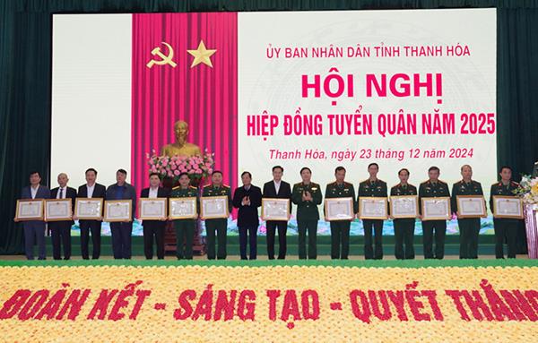 Tại Hội nghị, đại diện các đơn vị nhận quân đã ký kết biên bản hiệp đồng giao nhận quân. Nhân dịp này, UBND tỉnh Thanh Hoá đã trao bằng khen cho 20 tập thể và 20 cá nhân có thành tích xuất sắc trong thực hiện công tác tuyển quân năm 2024.