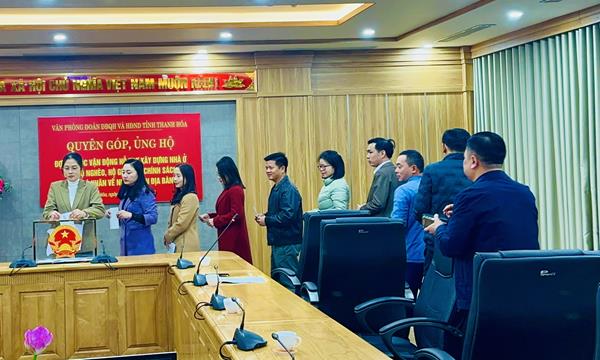 Hưởng ứng Thư kêu gọi của Tỉnh ủy, HĐND, UBND, Ủy ban MTTQ Việt Nam tỉnh về ủng hộ, hỗ trợ xây dựng nhà ở cho hộ nghèo, hộ gia đình chính sách, hộ còn khó khăn về nhà ở trên địa bàn tỉnh (đợt 2 năm 2025) và phong trào cả nước chung tay “xóa nhà tạm, nhà dột nát” theo Chỉ thị số 42/CT-TTg ngày 9/11/2024; với tinh thần “tương thân, tương ái”, “lá lành đùm lá rách”, ngay sau lễ phát động, các đồng chí: Phó Chủ tịch Thường trực HĐND tỉnh Lê Tiến Lam; Phó trưởng Đoàn ĐBQH tỉnh Mai Văn Hải, lãnh đạo Văn phòng Đoàn ĐBQH và HĐND tỉnh, lãnh đạo các Ban của HĐND tỉnh cùng đông đảo cán bộ, công chức, người lao động của Văn phòng đã quyên góp ủng hộ cuộc vận động.