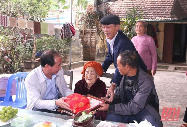Nhân dịp này, đồng chí Phó Chủ tịch HĐND tỉnh cũng đã đến thăm và tặng quà tại Trung tâm Chăm sóc, nuôi dưỡng người có công Thanh Hóa; thăm tặng quà, chúc Tết và trao thiếp mừng thọ, vải lụa của Chủ tịch nước cho cụ bà Chu Thị Hợi, năm nay tròn 100 tuổi, ở phường Quảng Châu; thăm, tặng quà thương binh - nạn nhân chất độc hóa học Lê Ngọc Quyền, ở thôn Minh Thiện, xã Quảng Minh.