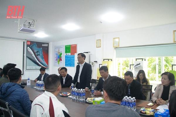 Đồng chí Mai Văn Hải, Tỉnh ủy viên, Phó Trưởng Đoàn ĐBQH tỉnh Thanh Hóa, cùng các thành viên trong đoàn công tác đến thăm và làm việc với Công ty TNHH giầy AKALIA Việt Nam. (Ảnh: Báo Thanh Hóa)