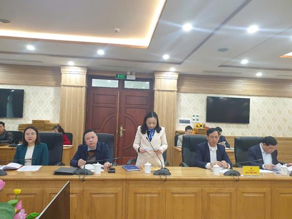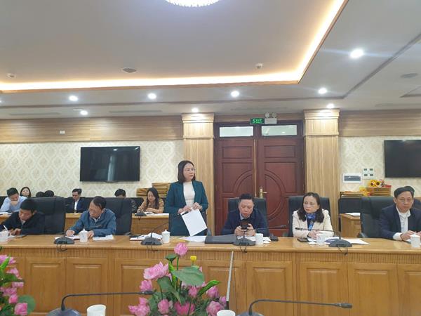Đồng chí Lê Thị Hương, Phó Trưởng Ban Pháp chế HĐND tỉnh phát biểu tại Hội nghị