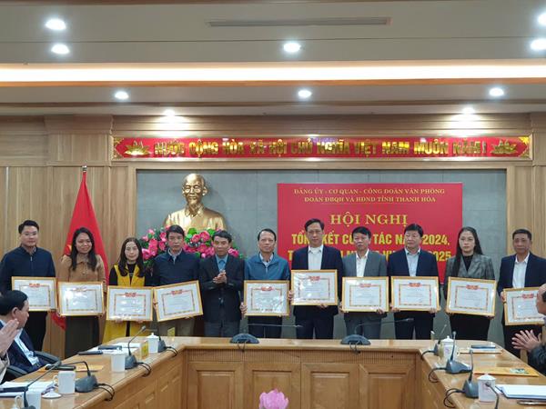 Nhân dịp này, Văn phòng công bố Quyết định tặng Huân chương Lao động hạng Nhì cho đồng chí Nguyễn Quang Hải, Tỉnh ủy viên, Phó Chủ tịch HĐND tỉnh; Bằng khen của Thủ tướng Chính phủ cho 02 đồng chí Trần Mạnh Long, Bí thư Đảng ủy, Chánh Văn phòng và đồng chí Lê Như Tú, Bí thư Chi bộ, Trưởng phòng Hành chính, Tổ chức, Quản trị; Giấy khen của Đảng ủy Khối các cơ quan và Doanh nghiệp tỉnh cho đồng chí Mai Văn Hải, Tỉnh ủy viên, Phó Trưởng Đoàn ĐBQH tỉnh. Công bố quyết định khen thưởng của Đảng ủy Văn phòng cho 01 chi bộ và 10 đảng viên hoàn thành xuất sắc nhiệm vụ…