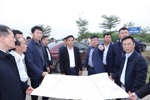 Bí thư Tỉnh ủy Nguyễn Doãn Anh và các thành viên trong đoàn kiểm tra dự án đường nối cao tốc Bắc Nam, Quốc lộ 1A đi Cảng Nghi Sơn; dự án đầu tư hệ thống thoát nước đường 513 - KKTNS.