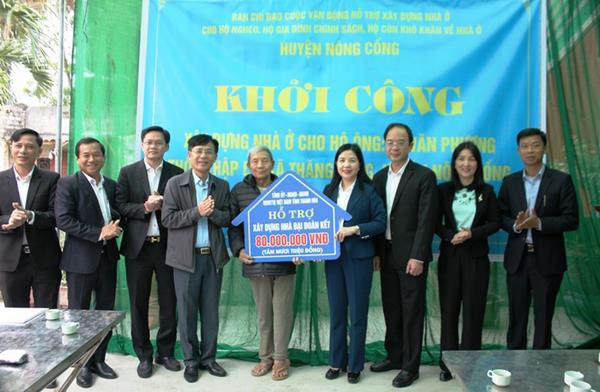 Chủ tịch Ủy ban MTTQ Việt Nam tỉnh Phạm Thị Thanh Thủy dự lễ khởi công, trao biển hỗ trợ xây dựng nhà ở cho gia đình ông Lê Văn Phương, thôn Thập Lý, xã Thăng Long, huyện Nông Cống. Ảnh: Mỹ Hạnh