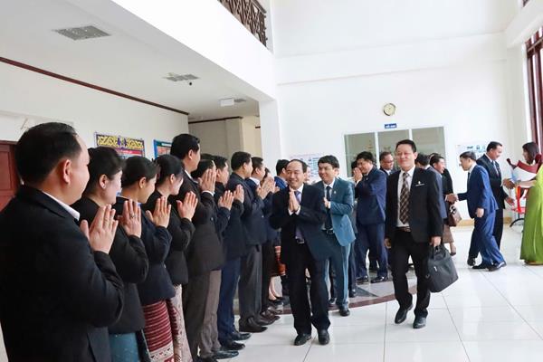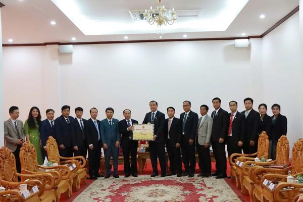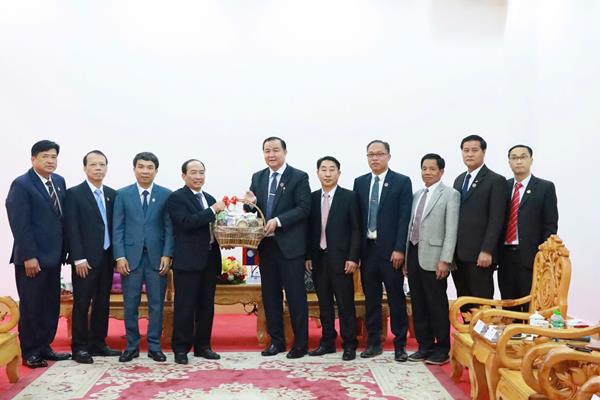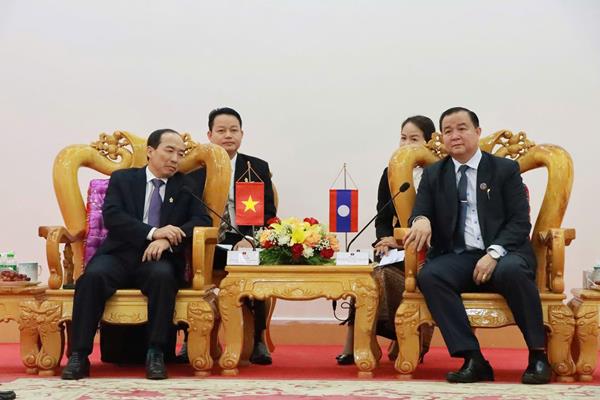 Thay mặt HĐND tỉnh Hủa Phăn, đồng chí Khon Pạ Phăn Lương Sỉ Chăn Thong, Ủy viên Ban Thường vụ Tỉnh ủy, Chủ tịch HĐND tỉnh Hủa Phăn vui mừng chào đón Đoàn công tác của Thường trực HĐND tỉnh Thanh Hóa sang thăm, làm việc, chúc Tết Bunpimay tại tỉnh Hủa Phăn.