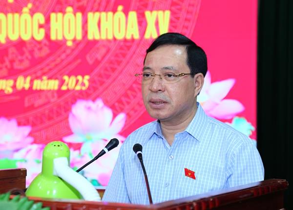 ĐBQH Lại Thế Nguyên, Phó Bí thư Thường trực Tỉnh ủy, Chủ tịch HĐND tỉnh, Trưởng Đoàn ĐBQH tỉnh phát biểu tại hội nghị.