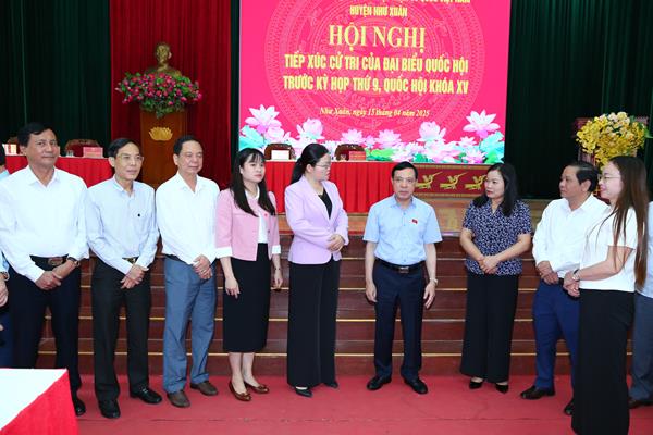 Với tinh thần dân chủ, thẳng thắn, tại buổi tiếp xúc, cử tri huyện Như Xuân đề nghị Quốc hội, Chính phủ, các Bộ, ngành tiếp tục quan tâm đầu tư cho các huyện miền núi, đặc biệt là đầu tư các công trình thiết yếu như đường giao thông liên xã, điện lưới quốc gia, hệ thống cấp nước sạch, trường học bán trú cho học sinh dân tộc thiểu số.