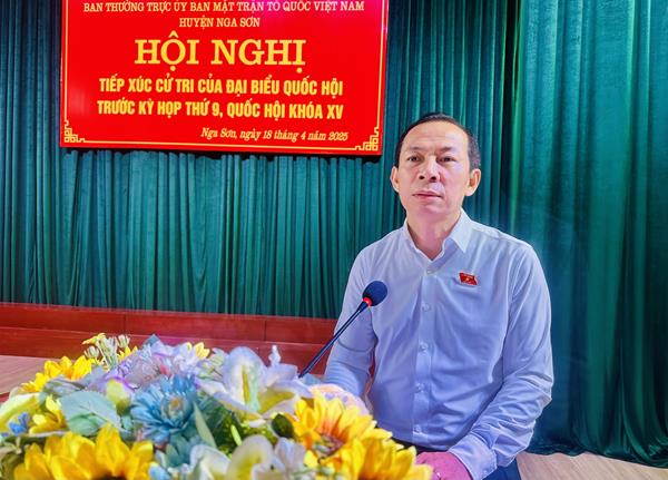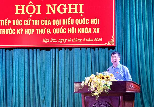 Tại buổi tiếp xúc, đại diện ĐBQH tỉnh đã thông tin tới cử tri huyện Nga Sơn về dự kiến nội dung, chương trình Kỳ họp thứ 9, Quốc hội khóa XV; báo cáo kết quả giải quyết ý kiến, kiến nghị của cử tri huyện Nga Sơn sau Kỳ họp thứ 7, Quốc hội khóa XV.