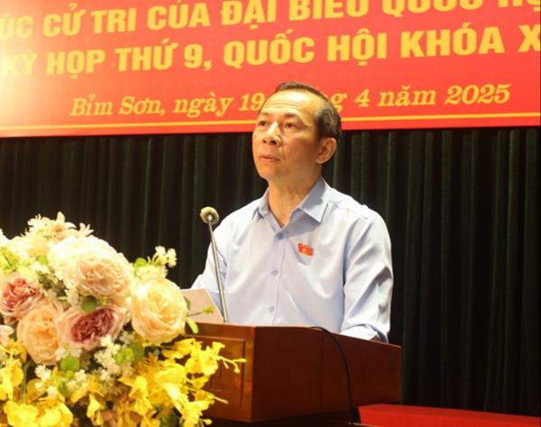 Sáng 19/4, đoàn đại biểu Quốc hội (ĐBQH) tỉnh Thanh Hóa gồm các đại biểu: Trần Văn Thức, Tỉnh ủy viên, Phó Trưởng Ban Tuyên giáo và Dân vận Tỉnh ủy; Võ Mạnh Sơn, Tỉnh ủy viên, Chủ tịch Liên đoàn Lao động tỉnh đã có buổi tiếp xúc cử tri thị xã Bỉm Sơn, trước kỳ họp thứ 9, Quốc hội khóa XV.