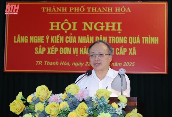 Thực hiện Kết luận số 3546-KL/TU, ngày 19/4/2025 của Ban Chấp hành Đảng bộ tỉnh về Đề án sắp xếp đơn vị hành chính cấp xã tỉnh Thanh Hóa; Kế hoạch số 68/KH-UBND, ngày 16/4/2025 của UBND tỉnh Thanh Hoá về thực hiện sắp xếp đơn vị hành chính cấp xã của tỉnh; Kế hoạch số 69/KH-UBND, ngày 16/4/2025 của UBND tỉnh về tổ chức lấy ý kiến Nhân dân và thông qua HĐND cấp xã, cấp huyện về chủ trương sắp xếp đơn vị hành chính cấp xã của tỉnh Thanh Hoá, UBND TP Thanh Hoá đã triển khai kế hoạch lấy ý kiến Nhân dân về sắp xếp đơn vị hành chính cấp xã trên địa bàn thành phố, từ ngày 19 đến ngày 21/4/2025. Đến nay 100% các phường, xã đã hoàn thành lấy ý kiến cử tri.