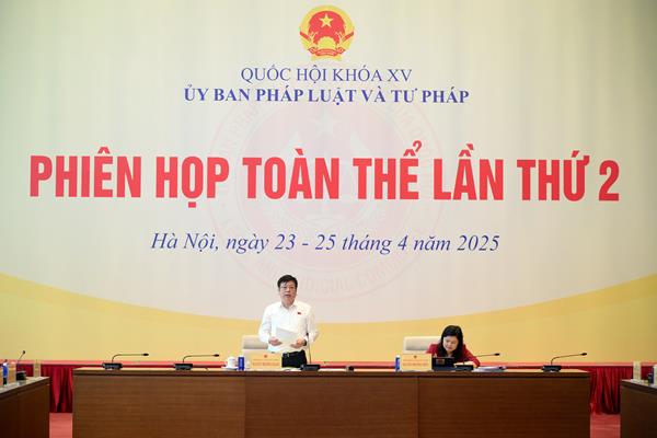 Sáng 25/4, tại Nhà Quốc hội, tiếp tục chương trình Phiên họp toàn thể lần thứ 2, dưới sự chủ trì của Phó Chủ nhiệm Ủy ban Pháp luật và Tư pháp Nguyễn Trường Giang, Ủy ban Pháp luật và Tư pháp tiến hành thẩm tra dự án Luật Cán bộ, công chức (sửa đổi).