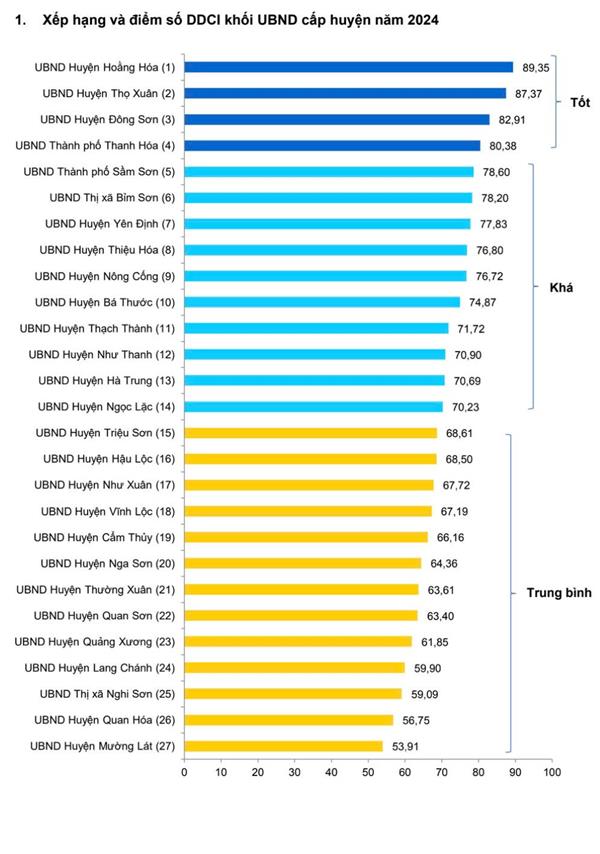 Xếp hạng DDCI Thanh Hóa khối địa phương năm 2024.