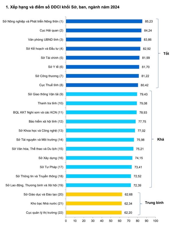 Xếp hạng DDCI Thanh Hóa khối sở, ngành năm 2024.