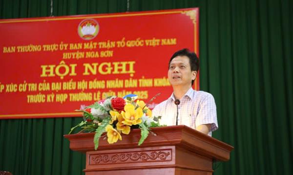Chiều ngày 20/5, tại xã Nga Văn, huyện Nga Sơn, Tổ đại biểu HĐND tỉnh gồm Thiếu tướng Trần Phú Hà, Ủy viên Ban Thường vụ Tỉnh ủy, Giám đốc Công an tỉnh; ông Đỗ Ngọc Duy, Phó Trưởng Ban Kinh tế - Ngân sách HĐND tỉnh đã có buổi tiếp xúc cử tri trước kỳ họp thường lệ giữa năm 2025 của HĐND tỉnh khóa XVIII.