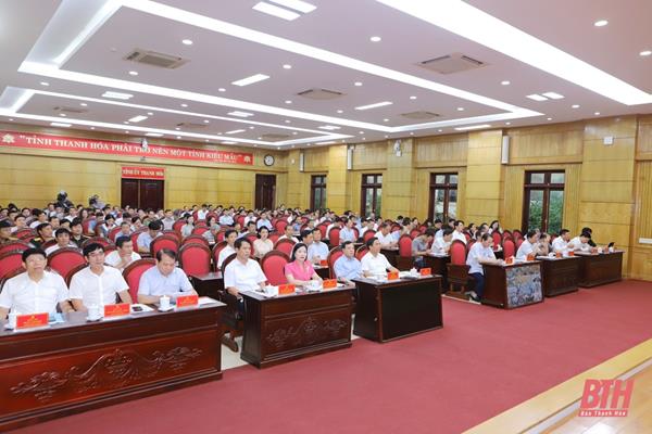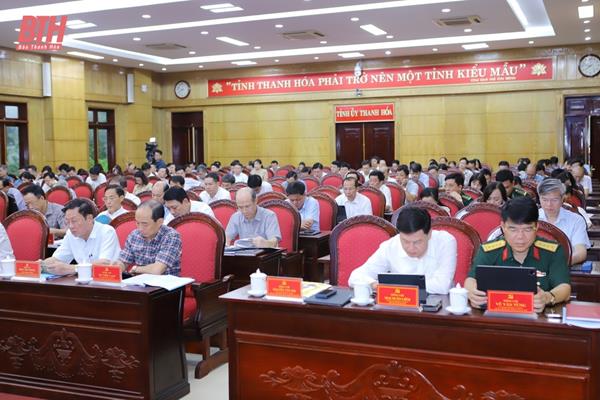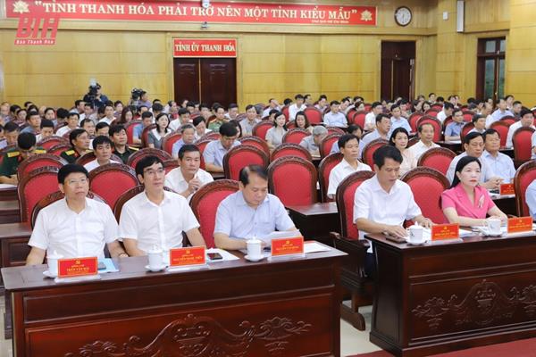 Các đồng chí lãnh đạo tỉnh và đại biểu dự hội nghị tại trụ sở Tỉnh ủy Thanh Hóa.