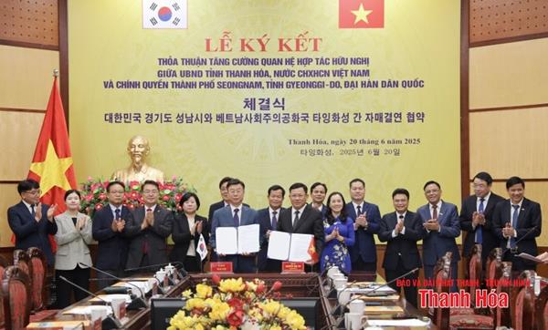 Ngay sau hội đàm, trước sự chứng kiến của lãnh đạo hai đoàn và các đại biểu, đồng chí Nguyễn Văn Thi, Phó Chủ tịch Thường trực UBND tỉnh Thanh Hóa và ngài Shin Sang Jin, Thị trưởng thành phố Seongnam, đã ký kết Thỏa thuận tăng cường quan hệ hợp tác hữu nghị giữa hai địa phương.