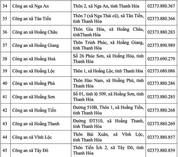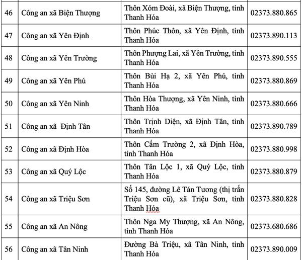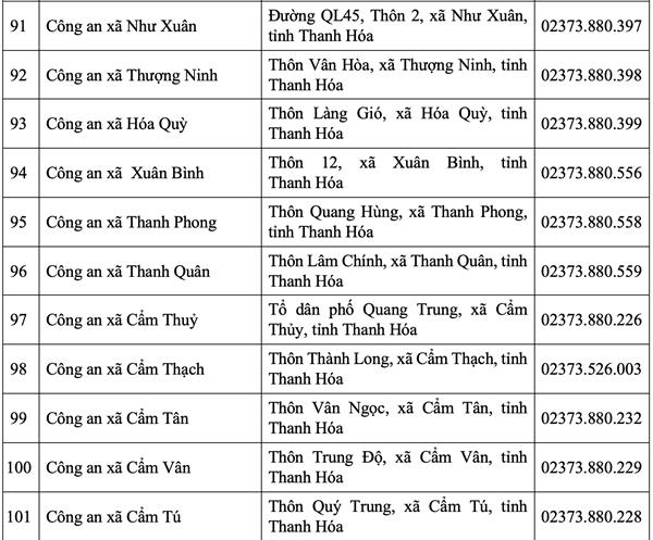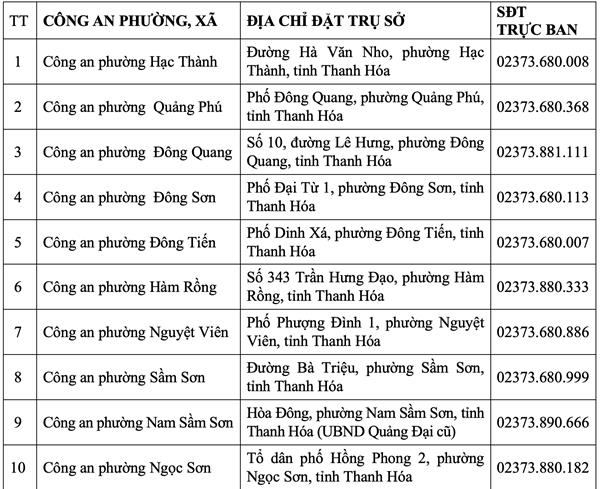 Thông tin về 166 trụ sở và số điện thoại trực ban của Công an xã, phường sau khi sắp xếp sẽ được niêm yết công khai tại trụ sở UBND cùng cấp, trên Cổng thông tin điện tử của Công an tỉnh và Cổng dịch vụ công tỉnh Thanh Hóa để người dân dễ dàng tra cứu, liên hệ khi cần thiết.