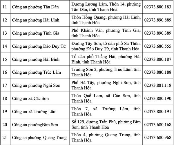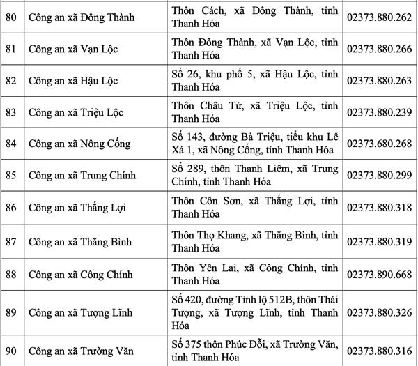 Công an tỉnh Thanh Hóa (trụ sở chính): Số 15A Hạc Thành, phường Hạc Thành – địa điểm không thay đổi.