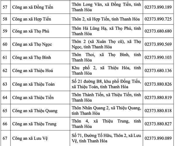 Bộ phận một cửa Công an tỉnh Thanh Hóa: Số 01 Đỗ Huy Cư, phường Hạc Thành.