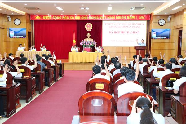 Các đại biểu HĐND tỉnh Thanh Hóa biểu quyết thông qua các nghị quyết tại kỳ họp thứ 30 (ngày 24/6/2025).