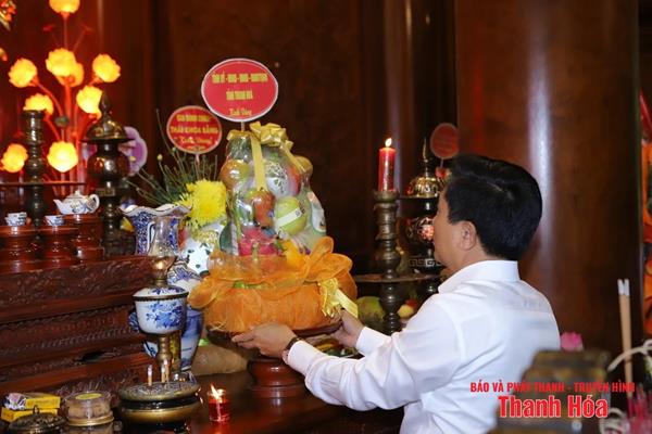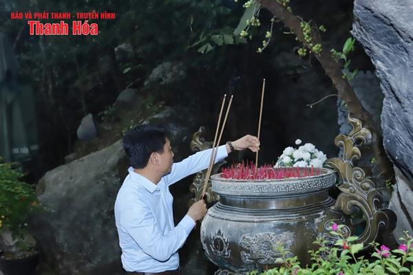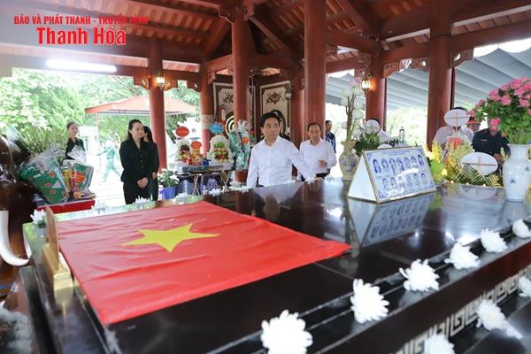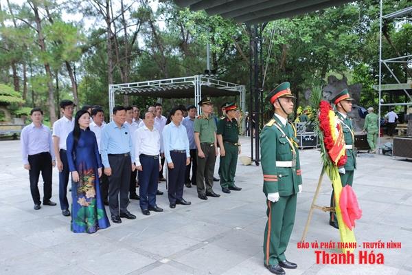 Dâng hoa và thắp nén hương thơm ở khu nghĩa trang tỉnh Thanh Hóa, thuộc Nghĩa trang liệt sĩ quốc gia Trường Sơn, đồng chí Bí thư Tỉnh ủy và các thành viên trong đoàn tưởng nhớ hơn 1.000 Anh hùng liệt sĩ là những người con xứ Thanh đã không tiếc máu xương, kiên cường trong mưa bom, bão đạn để giành thắng lợi trên các chiến trường, cùng với quân và dân cả nước đánh thắng đế quốc Mỹ xâm lược.