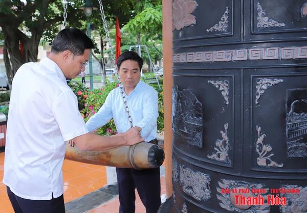 Các đồng chí Bí thư Tỉnh ủy Thanh Hóa Nguyễn Doãn Anh và Bí thư Tỉnh ủy Quảng Trị Lê Ngọc Quang thỉnh chuông tại Đền thờ Chủ tịch Hồ Chí Minh và các Anh hùng liệt sĩ tỉnh Quảng Trị.