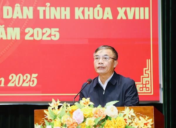 Đồng chí Lê Tiến Lam, Ủy viên Ban Thường vụ Tỉnh ủy, Phó Chủ tịch Thường trực HĐND tỉnh phát biểu tại Hội nghị