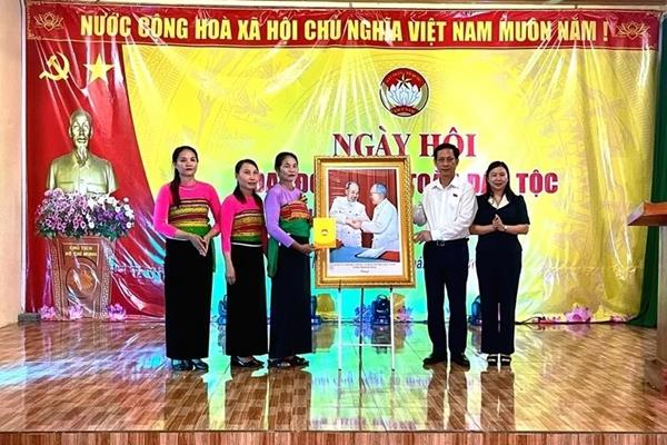 Phó Trưởng Đoàn ĐBQH tỉnh Mai Văn Hải trao tặng cán bộ và Nhân dân thôn Thiết Giang bức ảnh Chủ tịch Hồ Chí Minh bắt tay Chủ tịch Tôn Đức Thắng