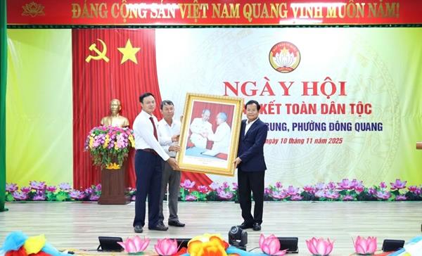 Nhân dịp này, đồng chí Nguyễn Quang Hải đã trao tặng cán bộ và Nhân dân khu dân cư Văn Trung bức ảnh “Chủ tịch Hồ Chí Minh bắt tay Chủ tịch Tôn Đức Thắng” – biểu tượng thiêng liêng của khối đại đoàn kết toàn dân tộc Việt Nam; đồng thời, trao nhiều phần quà ý nghĩa cho các hộ gia đình có hoàn cảnh khó khăn trên địa bàn, thể hiện sự quan tâm của Đảng, Nhà nước và HĐND tỉnh đối với Nhân dân cơ sở.