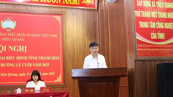 Sáng ngày 11/11/2025, Tổ đại biểu HĐND tỉnh đơn vị bầu cử số 16 gồm: Ông Nguyễn Quốc Hải, Trưởng ban Pháp chế HĐND tỉnh; ông Nguyễn Đức Thịnh, Phó Giám đốc Sở Tài chính đã có buổi tiếp xúc với đại diện cử tri xã Thiệu Quang trước kỳ họp thường lệ cuối năm 2025, HĐND tỉnh khóa XVIII. Cùng tham dự có đại diện Ban Thường trực Ủy ban MTTQ tỉnh; Thường trực HĐND, UBND, Ủy ban MTTQ xã Thiệu Quang.