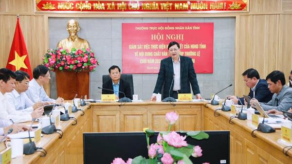 Phát biểu tại hội nghị, đồng chí Mai Xuân Liêm, Ủy viên Ban Thường vụ Tỉnh ủy, Phó Chủ tịch Thường trực UBND tỉnh nhấn mạnh, sau khi HĐND tỉnh ban hành Nghị quyết số 614/NQ-HĐND, UBND tỉnh đã có văn bản giao các đơn vị tham mưu triển khai thực hiện nghị quyết. Trên cơ sở tham mưu của các ngành, UBND tỉnh ban hành các văn bản chỉ đạo triển khai, đôn đốc, hướng dẫn các sở, ban, ngành, đơn vị cấp tỉnh, UBND các địa phương theo chức năng, nhiệm vụ được giao, lĩnh vực, địa bàn theo dõi để thực hiện.