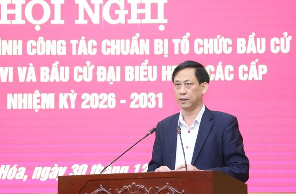 Chiều ngày 30/12, Ban Thường vụ Tỉnh ủy Thanh Hoá tổ chức hội nghị đánh giá tình hình công tác chuẩn bị tổ chức bầu cử ĐBQH khóa XVI và đại biểu HĐND các cấp nhiệm kỳ 2026-2031. Các đồng chí: Nguyễn Doãn Anh, Ủy viên Trung ương Đảng, Bí thư Tỉnh ủy, Trưởng Ban Chỉ đạo (BCĐ) cấp tỉnh cuộc bầu cử ĐBQH khóa XVI và đại biểu HĐND các cấp nhiệm kỳ 2026-2031; Nguyễn Hoài Anh, Ủy viên dự khuyết Trung ương Đảng, Phó Bí thư Tỉnh ủy, Chủ tịch UBND tỉnh, Phó Trưởng BCĐ; Trịnh Tuấn Sinh, Phó Bí thư Tỉnh ủy, Chủ tịch Ủy ban MTTQ tỉnh, Phó Trưởng BCĐ đồng chủ trì hội nghị.