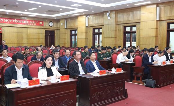 Chủ tịch UBND tỉnh Nguyễn Hoài Anh cùng các đại biểu dự hội nghị.