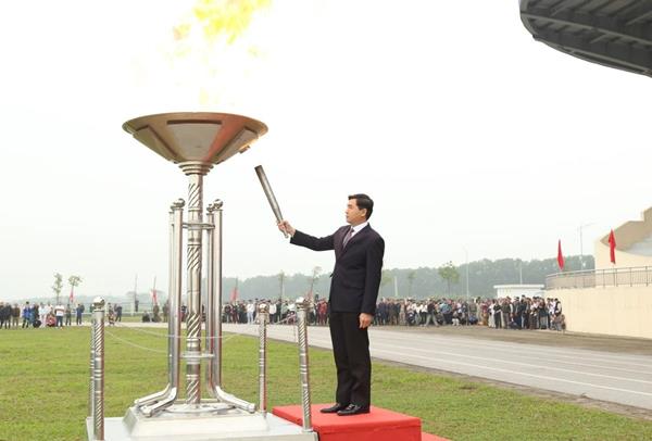Chủ tịch UBND tỉnh Nguyễn Hoài Anh thực hiện nghi thức thắp lửa truyền thống.