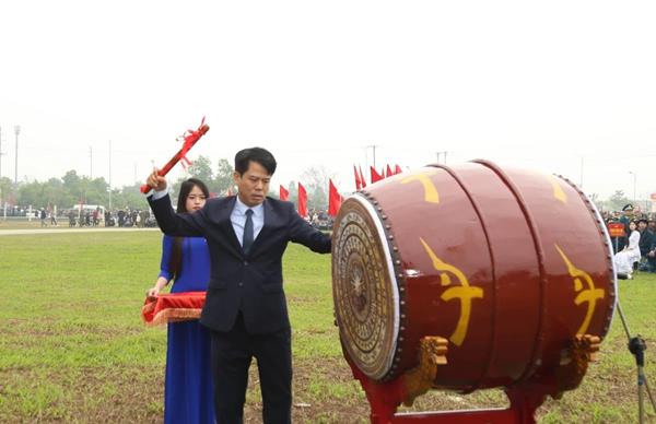 Đánh hồi trống khai hội giao quân và phát biểu tại buổi lễ, đồng chí Trưởng Ban Tuyên giáo và Dân vận Tỉnh ủy Đào Xuân Yên bày tỏ mong muốn và tin tưởng các tân binh sẽ nỗ lực phấn đấu, học tập, rèn luyện, trưởng thành trong môi trường quân đội, công an. Chúc các tân binh lên đường nhập ngũ luôn mạnh khỏe, hoàn thành xuất sắc nhiệm vụ bảo vệ Tổ quốc, xứng danh “bộ đội Cụ Hồ”.