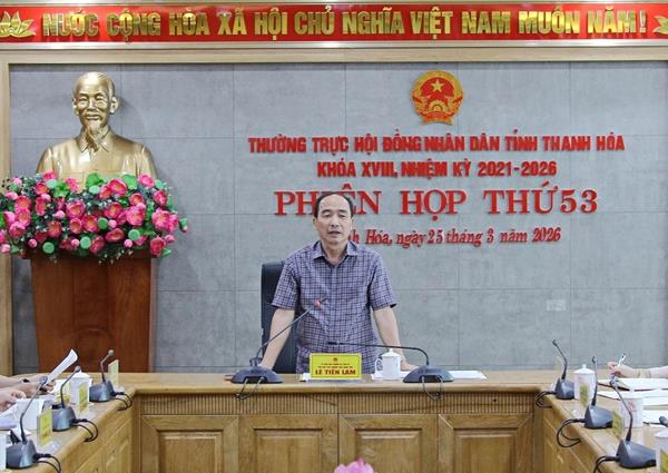 Chiều 25/3, Thường trực HĐND tỉnh Thanh Hóa tổ chức Phiên họp thứ 53 nhằm thảo luận, thống nhất chương trình và các nội dung trình Kỳ họp thứ nhất HĐND tỉnh khóa XIX, nhiệm kỳ 2026 - 2031. Đồng chí Lê Tiến Lam, Ủy viên Ban Thường vụ Tỉnh ủy, Phó Chủ tịch Thường trực HĐND tỉnh chủ trì phiên họp.