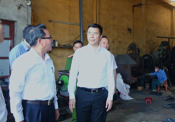 Trong chuyến công tác, đồng chí Nguyễn Hồng Phong, Ủy viên dự khuyết Trung ương Đảng, Phó Bí thư Thường trực Tỉnh ủy, Chủ tịch HĐND tỉnh cùng các thành viên trong đoàn công tác đã đến khảo sát thực tế tại Cụm công nghiệp làng nghề Tiến Lộc, xã Triệu Lộc.