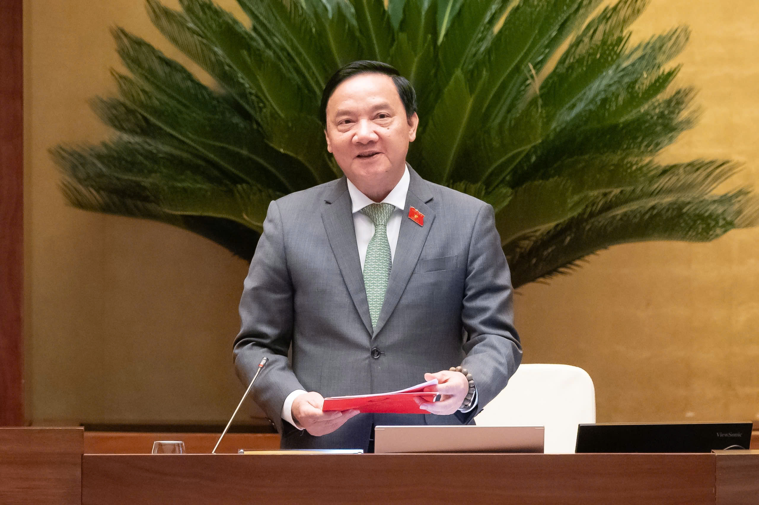 Chủ nhiệm Ủy ban Văn hóa và Xã hội Nguyễn Đắc Vinh trình bày Báo cáo thẩm tra