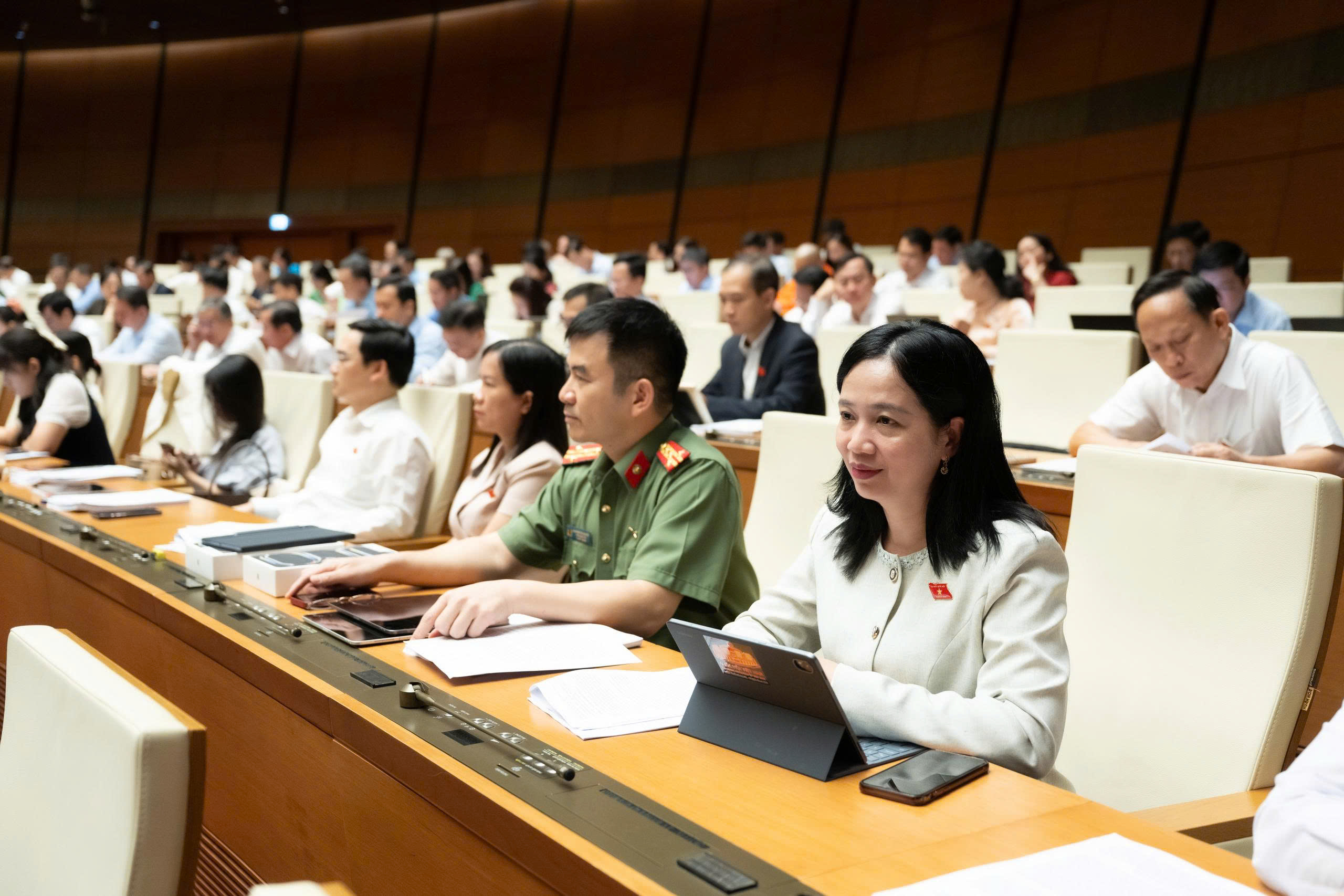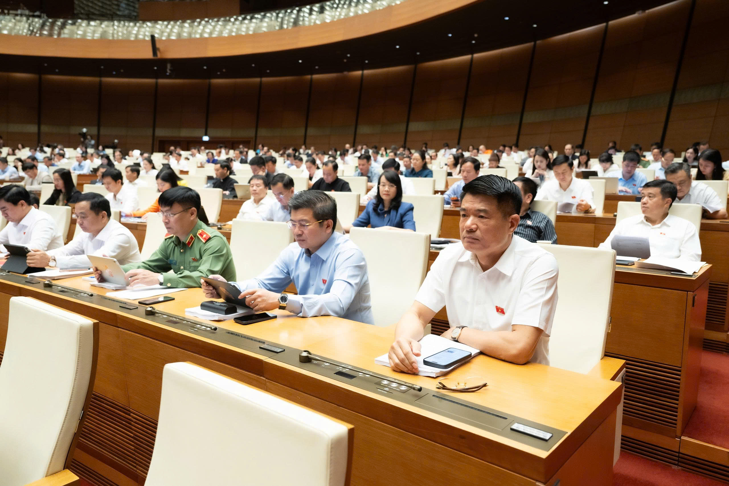 Cuối phiên sáng, Quốc hội họp riêng, thảo luận ở Tổ về dự thảo Nghị quyết của Quốc hội về cơ chế, chính sách đặc thù để xử lý vi phạm pháp luật về đất đai của tổ chức, cá nhân xảy ra trước khi Luật Đất đai năm 2024 có hiệu lực và giải pháp tiếp tục tháo gỡ khó khăn, vướng mắc cho các dự án tồn đọng, kéo dài.
